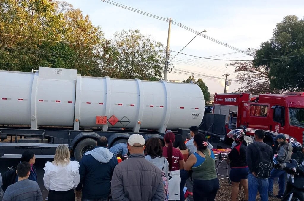 O caminhão permaneceu atravessado na via, o que exigiu a interdição temporária do trânsito. A Polícia Militar e a Secretaria de Mobilidade Urbana acompanharam a ocorrência e auxiliaram na organização do tráfego.