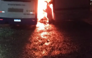 Câmera flagra suspeito com galão antes do fogo em garagem de veículos A Polícia Civil investiga um incêndio que