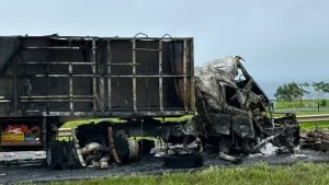 Motorista sofreu queimaduras e foi hospitalizado após batida entre carreta e caminhão-tanque na Rodovia Euclides da Cunha, em Jales.